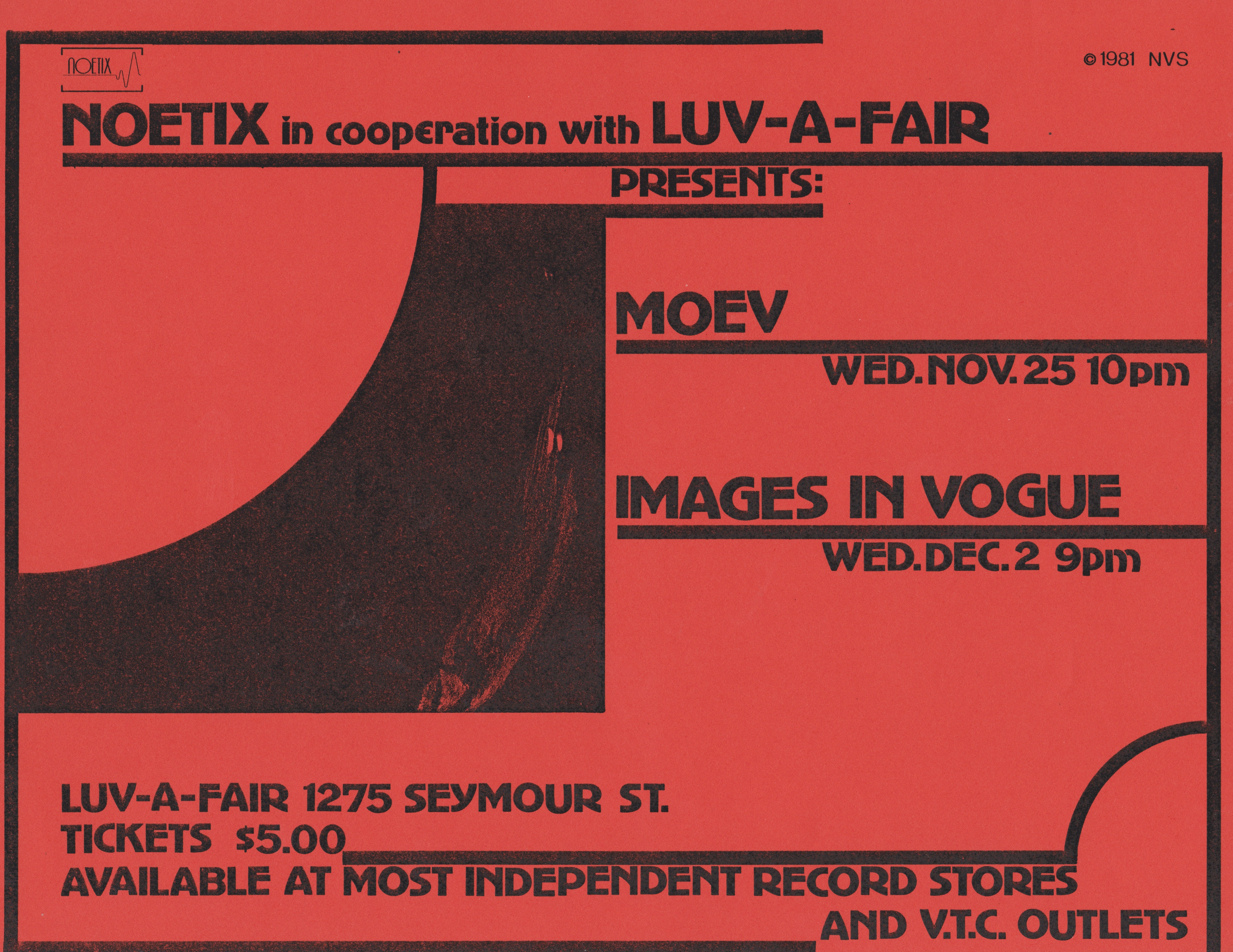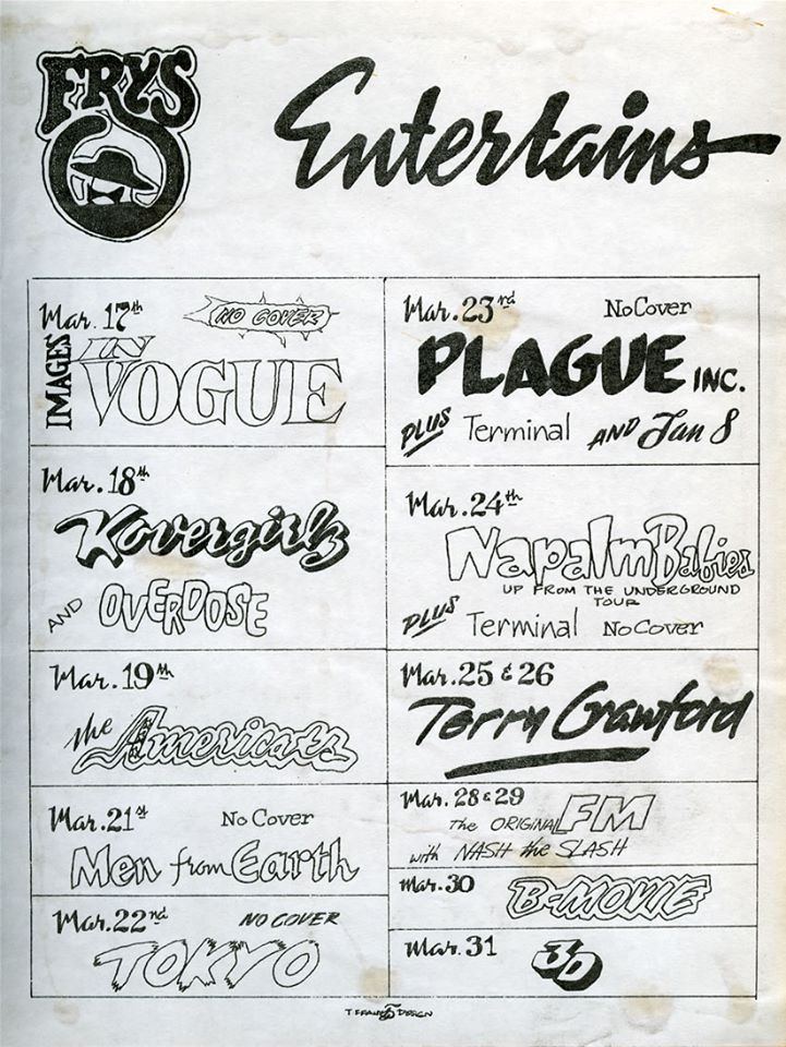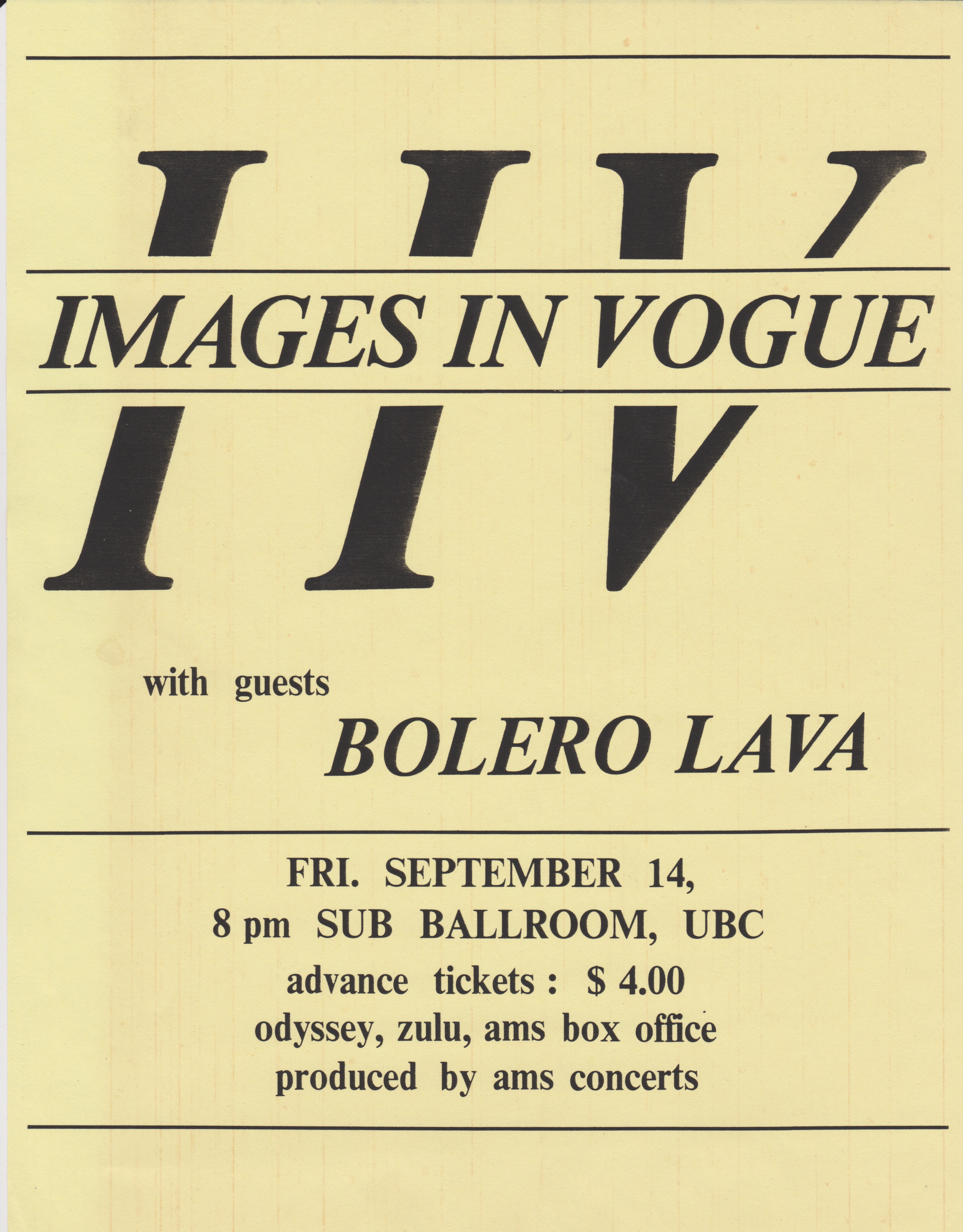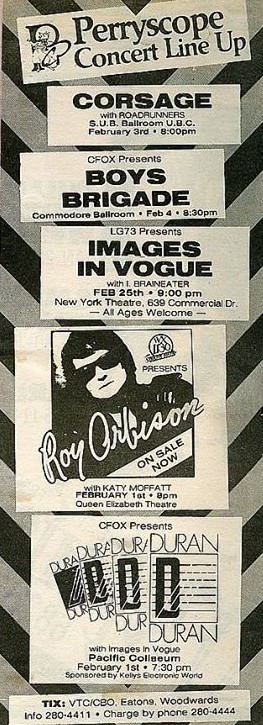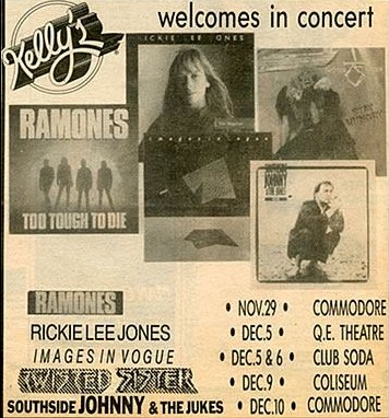 UBC Sub Ballroom September 14 1984<br> Club Soda September 17 & 18 <br>Club Soda postponed to December 1984<br>newspaper ad