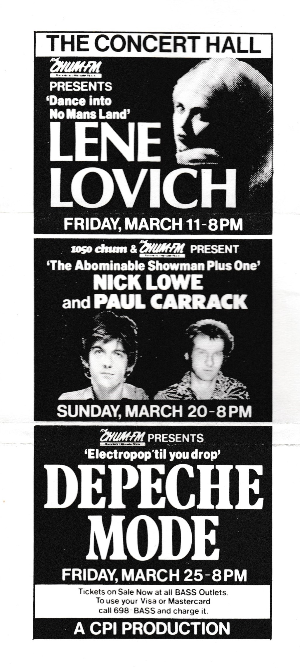 Concert Hall Toronto March 25 1983<br>opening for Depeche Mode